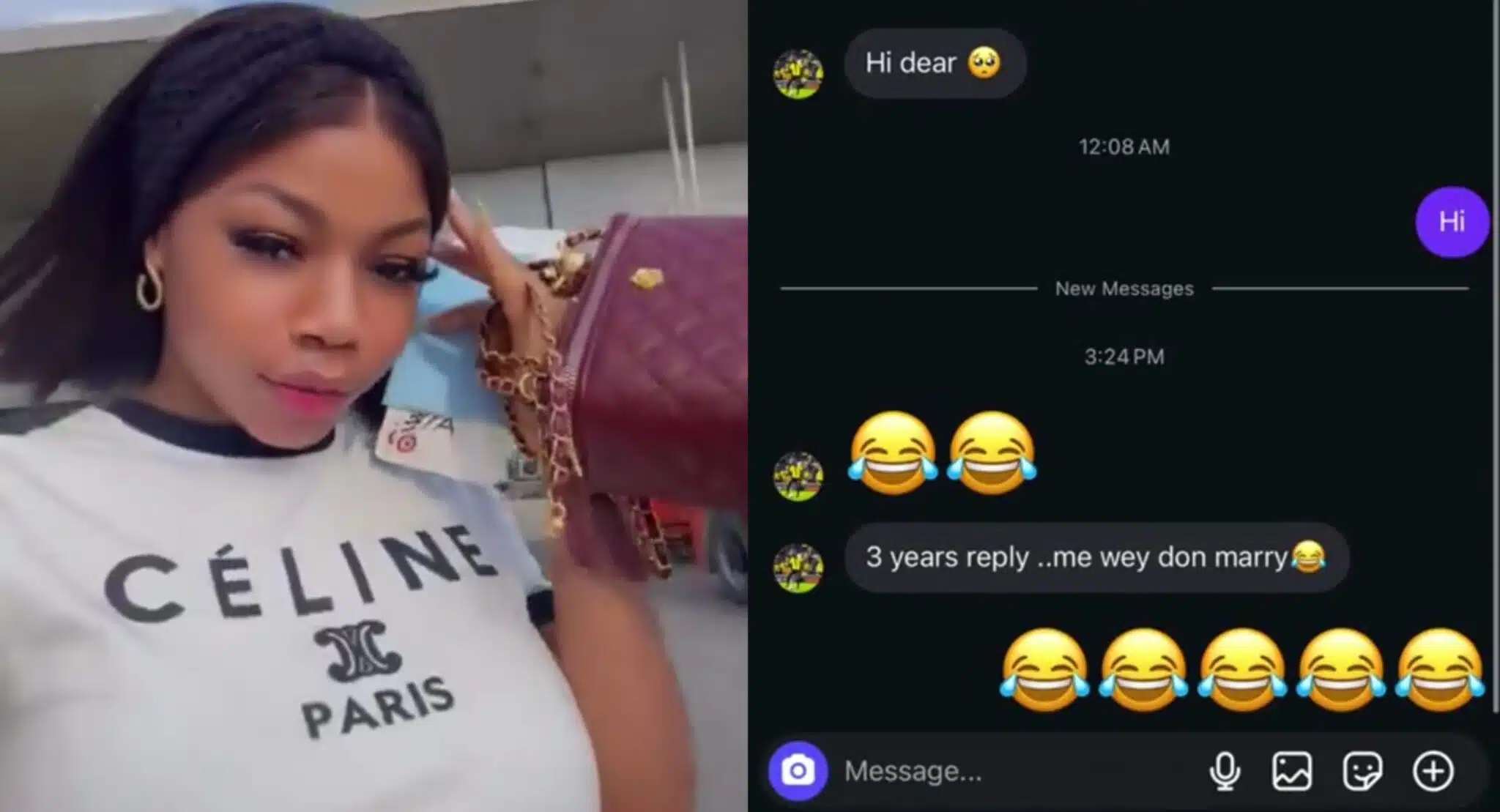 A young lady has left social media users in stitches after sharing the hilarious reaction she received when she finally replied to a man’s message three years after he first texted her. In a viral video posted on X (formerly Twitter) with the caption, “POV: I opened one Instagram DM after 3 years”, the lady […]