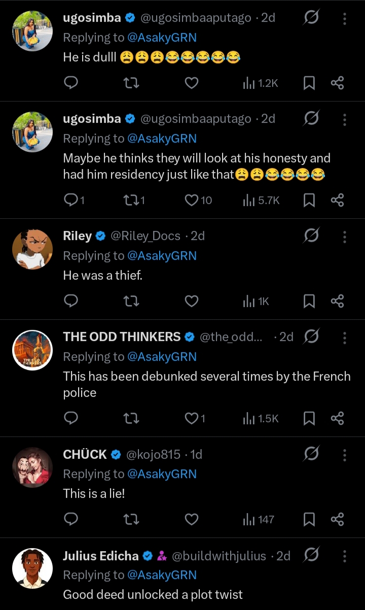 The incident, which has gone viral on social media, was shared on X (formerly Twitter) by user @AsakyGRN. According to the account, the Nigerian man found a lost wallet and chose to do the right thing by taking it to a nearby police station.