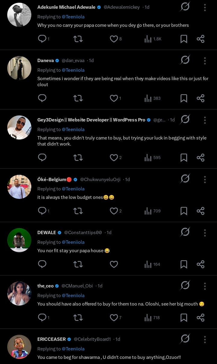 “Before when you get to a restaurant men would offer to pay for what you want, like ‘Fine girl, leave your money, I’ll pay’. I went to get shawarma of ₦3K but nobody offered to pay for me. All these men are aka gum.”