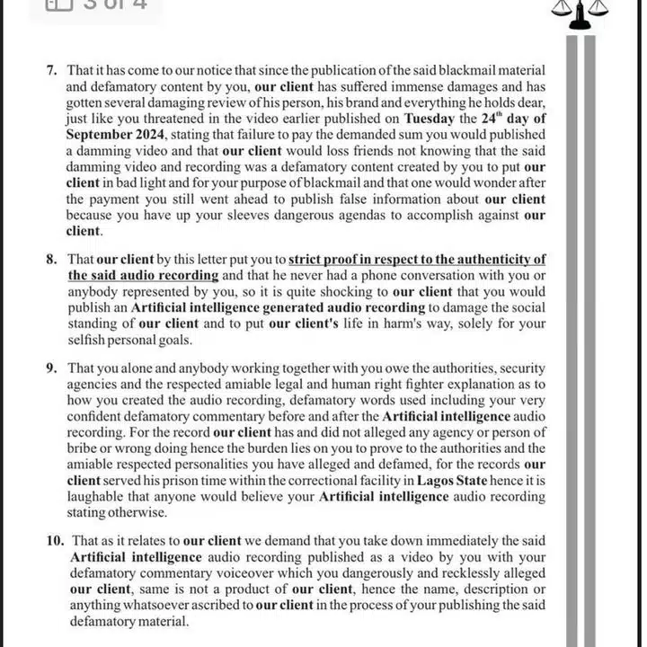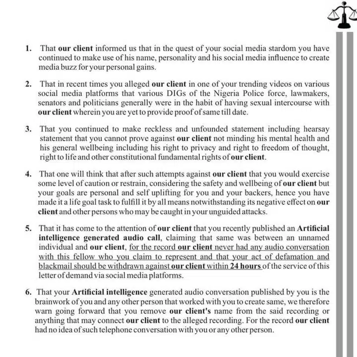 The lawsuit also focuses on a number of unfounded accusations made by VDM, such as the idea that Bobrisky had sex with lawmakers, politicians, and multiple Deputy Inspectors General of the Nigerian Police Force, in addition to the allegedly fake audio recordings.