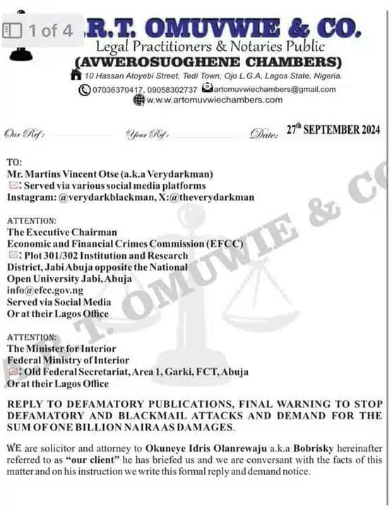 The two are becoming more and more tense, and Bobrisky is taking legal action to refute VeryDarkMan’s allegations that he was never jailed and that he bribed the Economic and Financial Crimes Commission (EFCC) with N15 million.