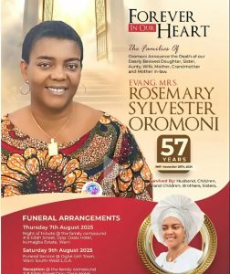Funeral arrangements have been made for the late Evangelist Mrs. Rosemary Oromoni, mother of the late Sylvester Oromoni Jr., the Dowen College student who passed away under controversial circumstances in 2021.