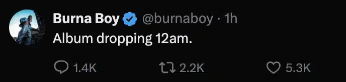 Ignoring the accusations, Burna Boy took to the X platform to announce the release of his album, which is set to drop at midnight today.