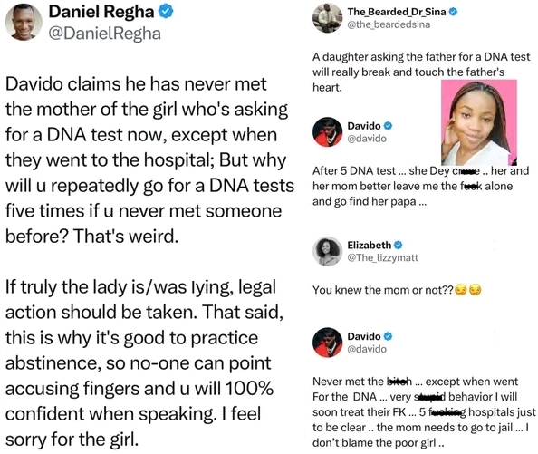 When another user, Elizabeth, questioned whether he knew the girl’s mother, Davido maintained that he had never met her outside the DNA testing process. He further criticised her actions, describing the situation as irresponsible and insisting that the child was not to blame.