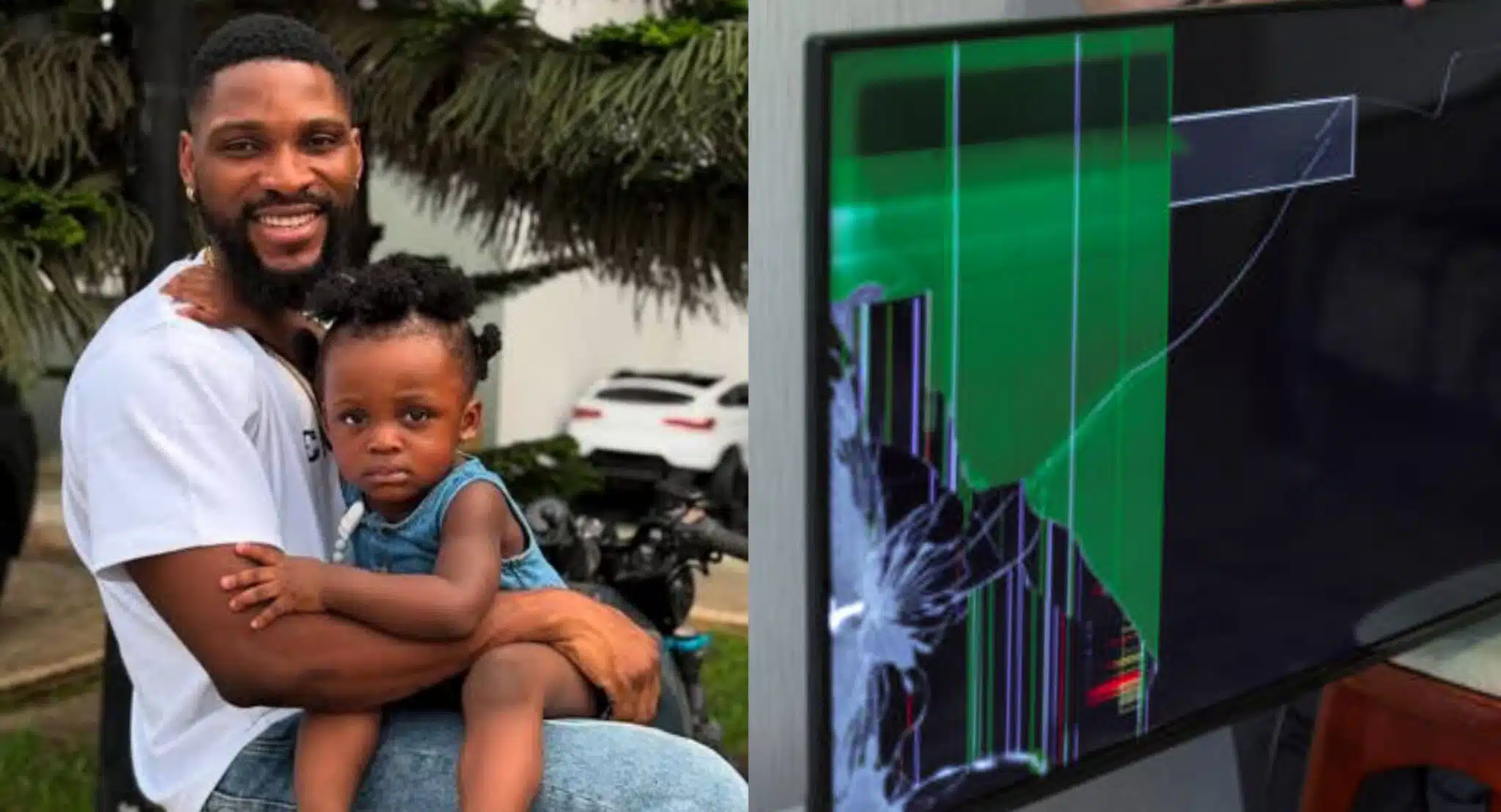 Nollywood actor and reality star, Tobi Bakre, has shared a hilarious parenting moment that left many fans in stitches after revealing that his daughter destroyed their television for the second time this year.