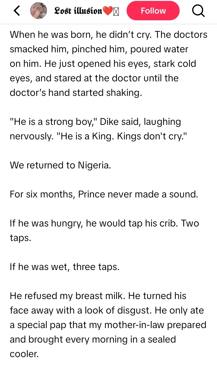According to her, he refused her breast milk and ate from the pap her mother‑in‑law prepared each morning.