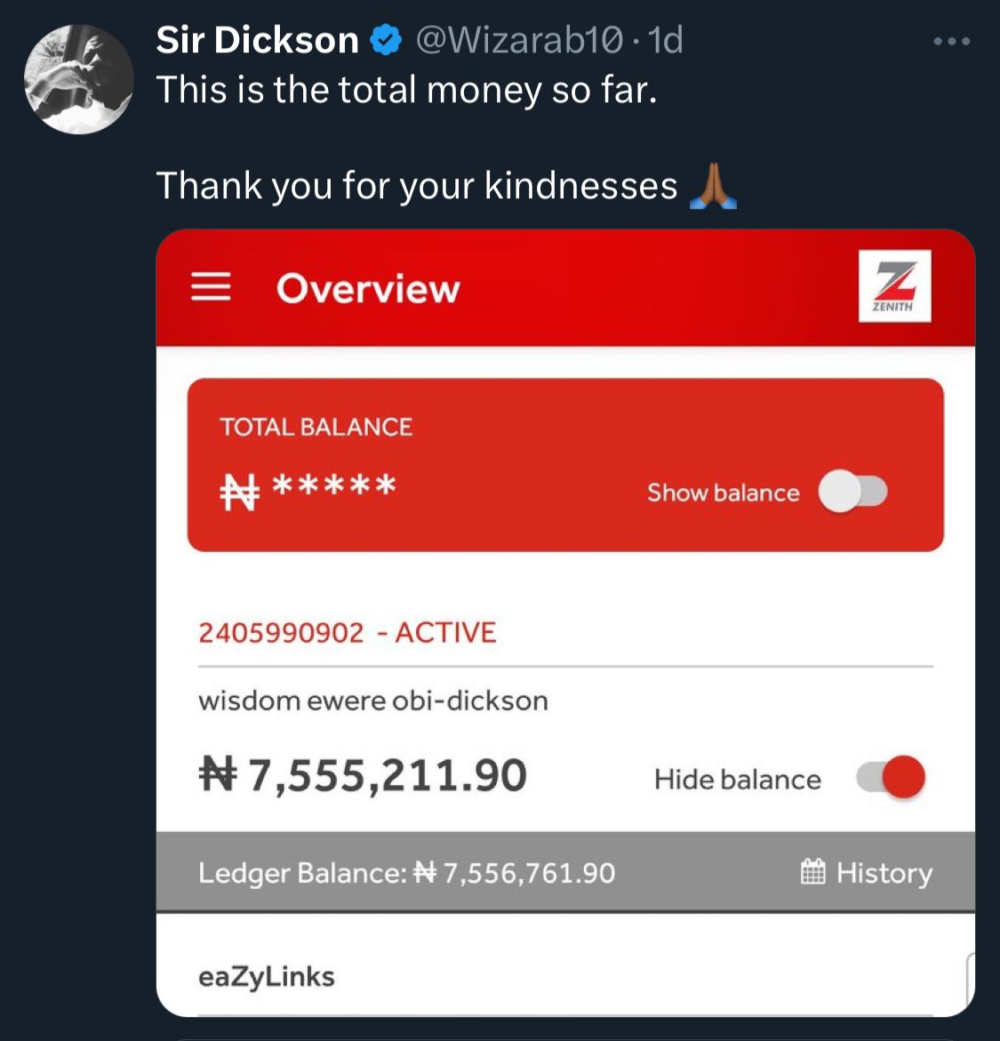 To the amazement of many, in just four hours, he successfully raised N6 million. Within about 25 hours, contributions surpassed N7 million.