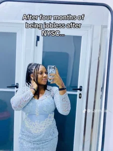 Sarmie, the woman, disclosed on her page that she had been looking for a job ever since she finished her NYSC four months ago.
