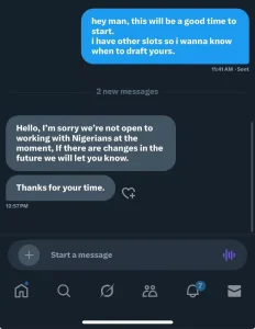 “just lost a $2k+ gig for being nigerian, i’m so devastated rn.