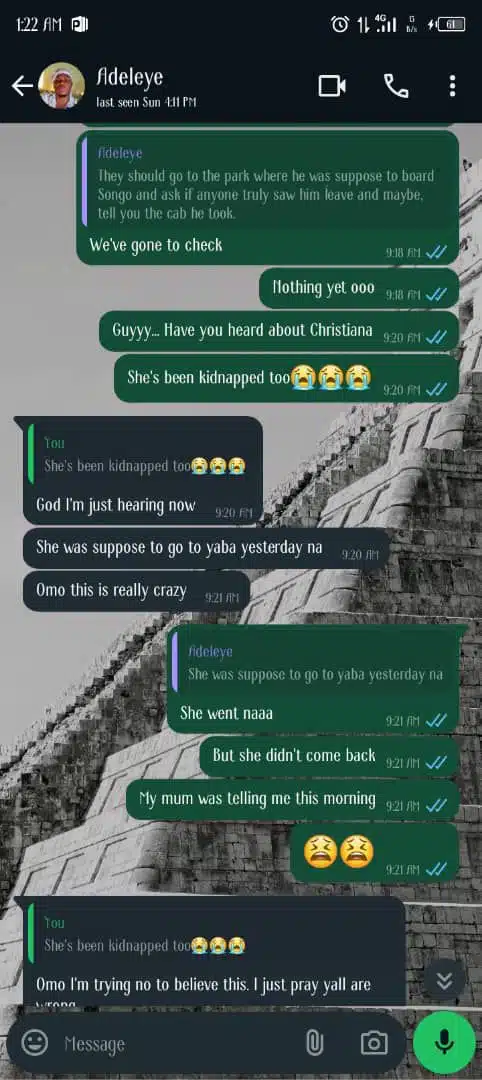 See Ayomide Adeleye’s chat on Christianah’s disappearance