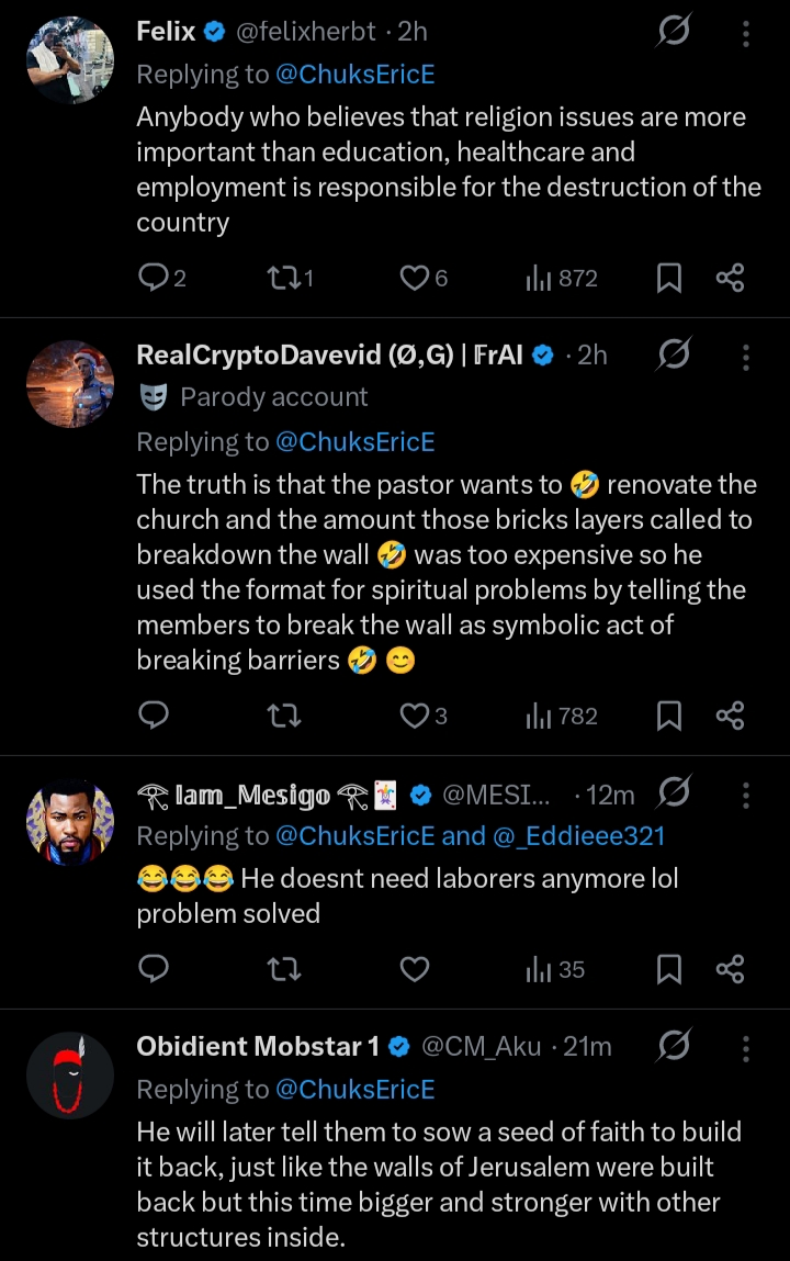 According to eyewitnesses, the pastor urged members to see the fence as every spiritual barrier, limitation, and obstacle hindering their breakthroughs and blessings. As prayers intensified, church members reportedly obeyed the instruction, physically bringing down the fence while chanting and praying fervently.
