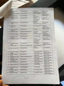 The affected students are: “Osome Babangida, Public and International Law; David Bartholomew, Entrepreneurship Studies; Yunusa Yusulf, Public and International Law; Buhari Ari Ibrahim, Psychology; Ridwan Ahmed Barade, Urban and Regional Planning; AROKE Rasheedah Ometere, Computer Science; AYUBA Justice Ajegena, Public Administration; ABUBAKAR Azah Ibrahim, Science Technology and Mathematics Education; DANLADI Ibrahim Osewu, Urban and Regional Planning; AMOS Akolo Abimiku, Community Health; Moses Precious Benjamin, Sociology; JOHN Harri Harri, Urban and Regional; STEPHEN Joshua, Computer Science.