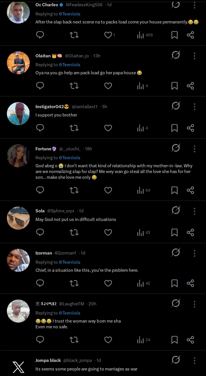 A Nigerian man has ignited intense online debate after offering controversial advice to women on how to react if they are physically assaulted by their mother-in-law in the presence of their husband.