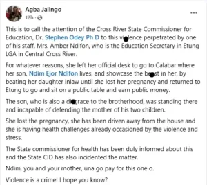 Furthermore, he revealed that Dooshima is experiencing health challenges stemming from stress and violence, and called for the intervention of Cross River State Commissioner of Education over the incident.
