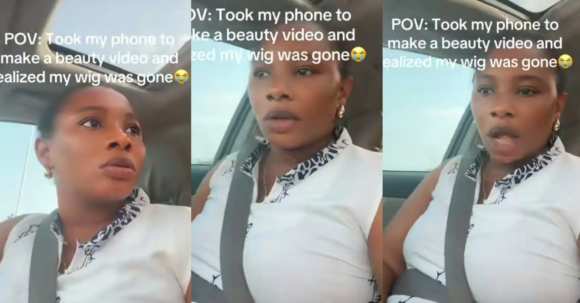 In the TikTok video which has garnered over 700, 000 views, @Lolo247maxy is about to record a video when she discovers her wig missing from her head .