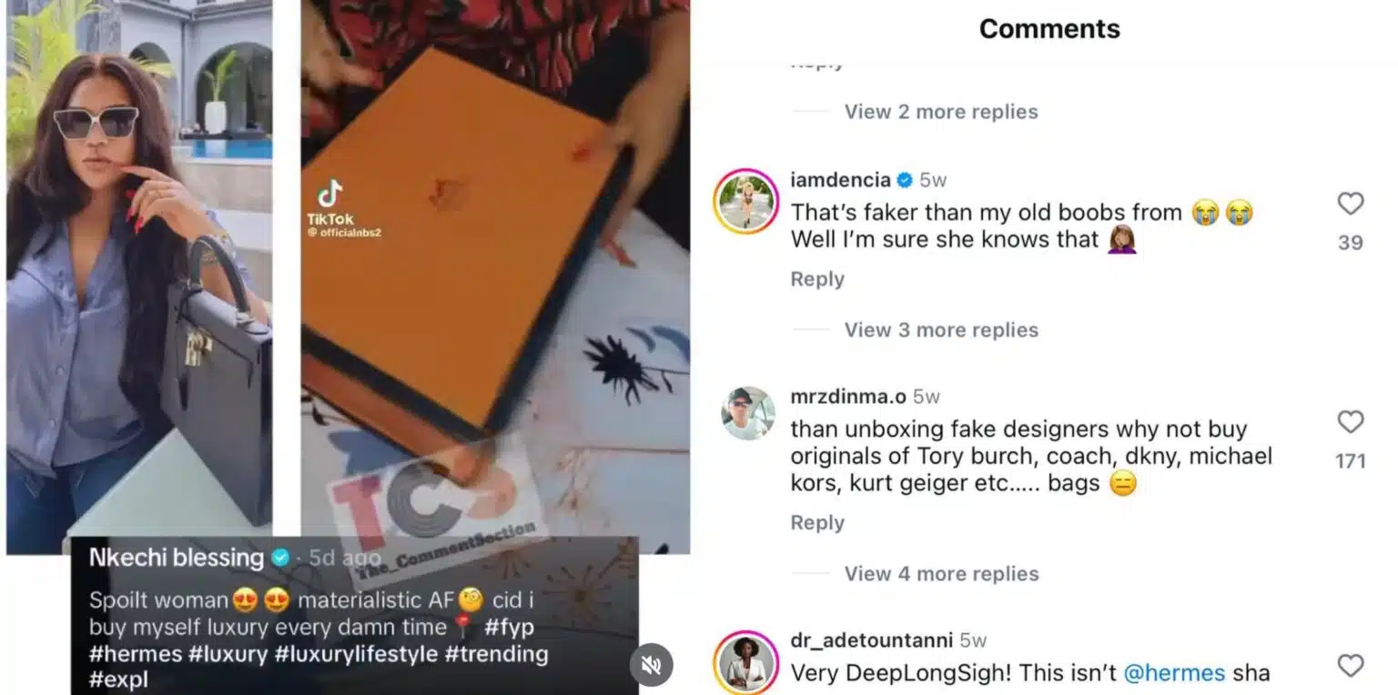 Cameroonian-Nigerian Singer, Dencia shades Nigerian actress, Nkechi Blessing over her recently purchased Hermes Birkin bag which she described as fake.