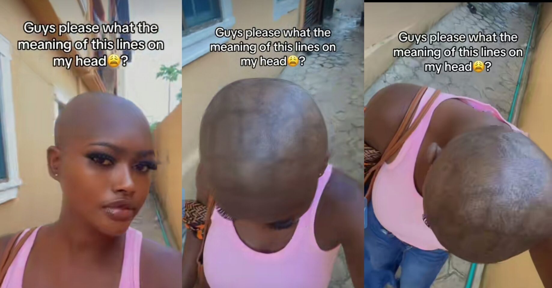 A Nigerian woman has sparked widespread reactions online after shaving her head for the first time and noticing unusual lines on her scalp.