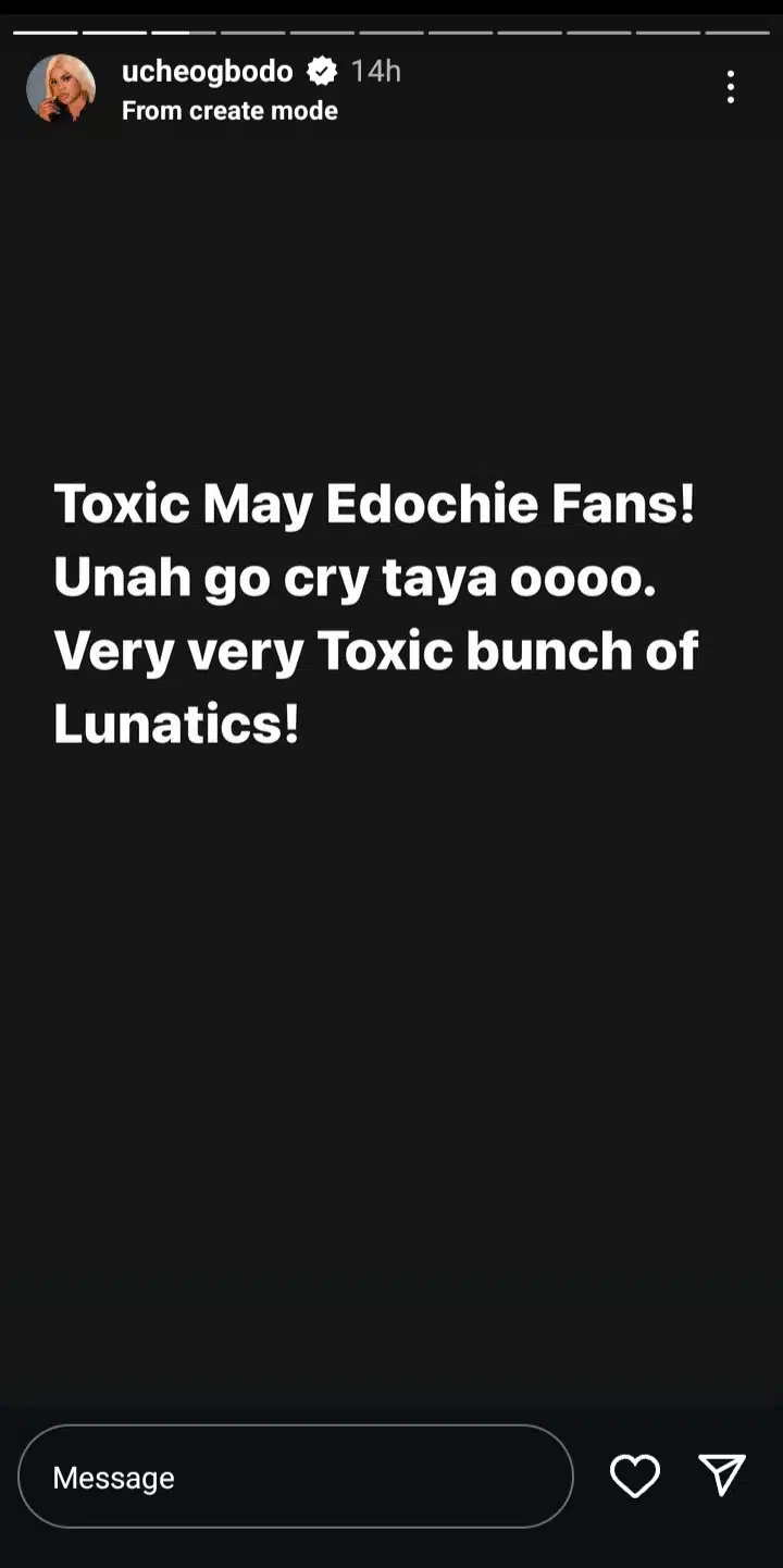 Ogbodo called them “toxic fans” and disclosed that she had blocked May Edochie because she seemed to tolerate their negative conduct.