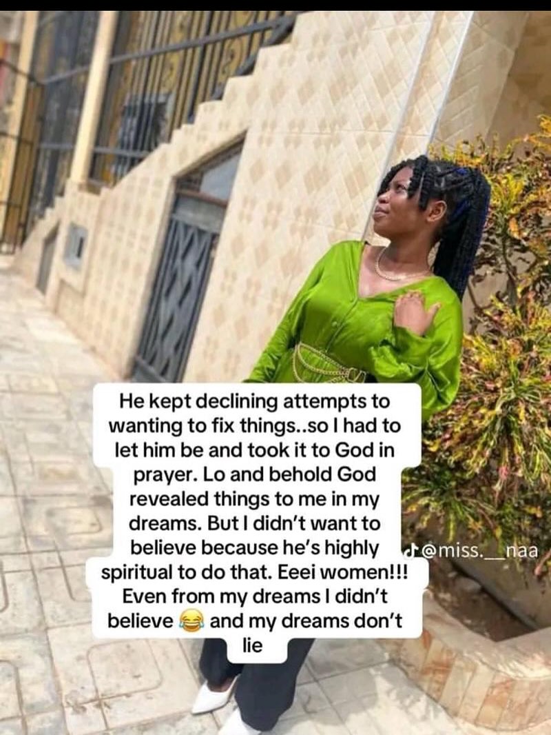 The woman said she turned to prayer during this period and began having recurring dreams that suggested her boyfriend was hiding something significant.