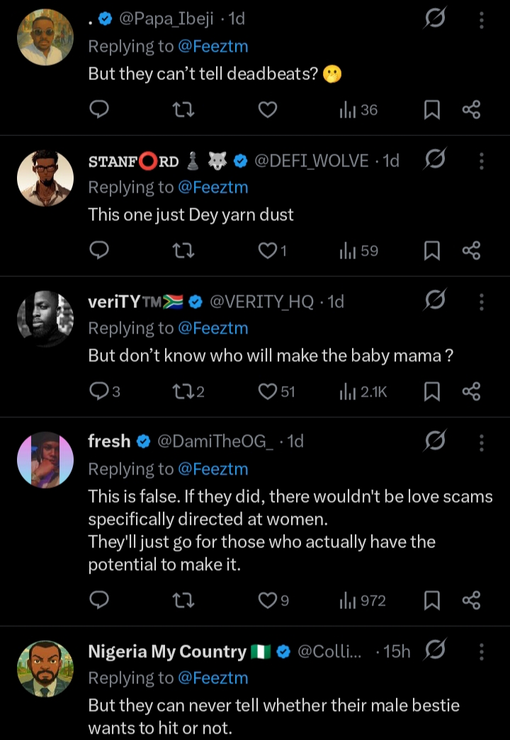 In a late-night reflection posted online, the lady explained that her opinion has nothing to do with material possessions or a man’s current financial situation. Instead, she said it is rooted in intuition.